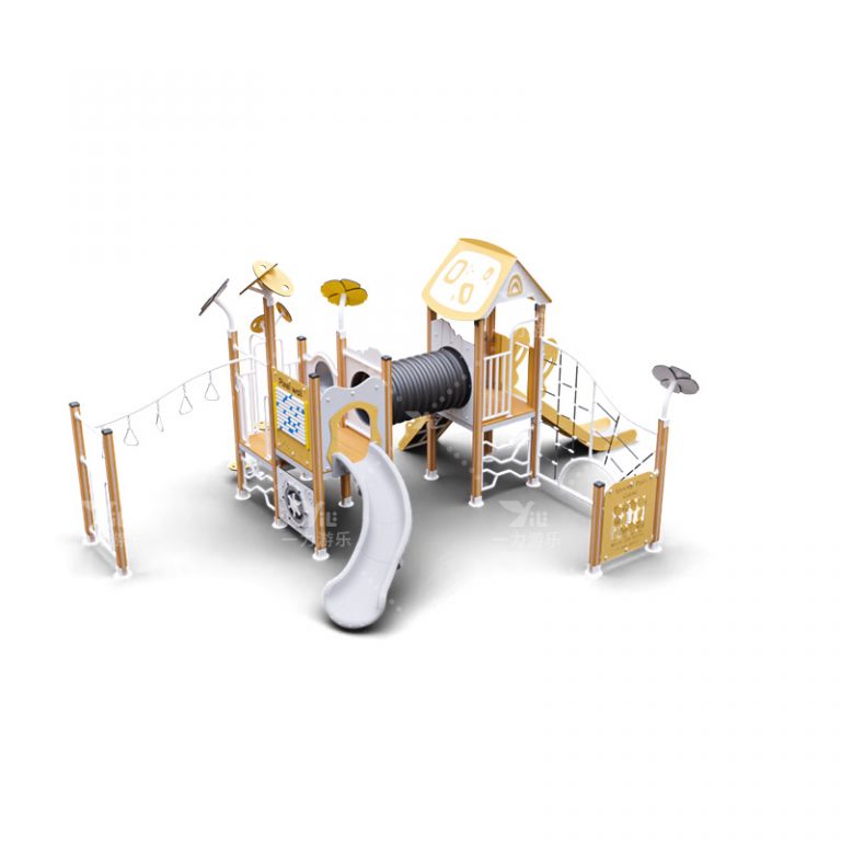 塑木PE板黄白组合滑梯 22-05101