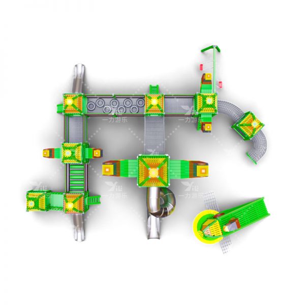 塑木、镀锌管、不锈钢滑梯、包尼龙钢丝网绳